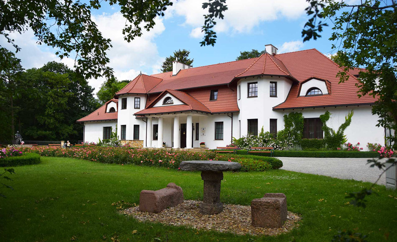 w Opinogórze. Postanowiono w miejscu dawnego, rozebranego na początku XX w. dworu Krasińskich, który pełnił funkcję siedziby rodowej, postawić nowy budynek, nawiązując do zamysłu wnuka poety Zygmunta Krasińskiego – Adama. Wybrano do realizacji zachowany projekt prof. J. Gałęzowskiego z 1908 r., dostosowując wnętrza do potrzeb muzeum – miały się tu znaleźć pomieszczenia administracyjne, sale ekspozycyjne i zaplecza magazynowe. 11 września 2008 r. – sto lat od ogłoszenia wyników konkursu architektonicznego – Dwór Krasińskich został oddany do użytkowania.