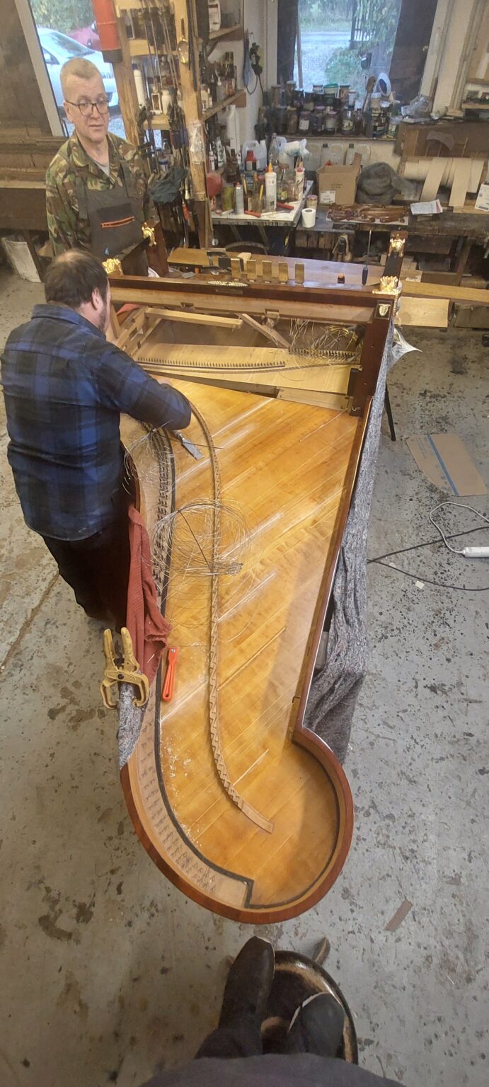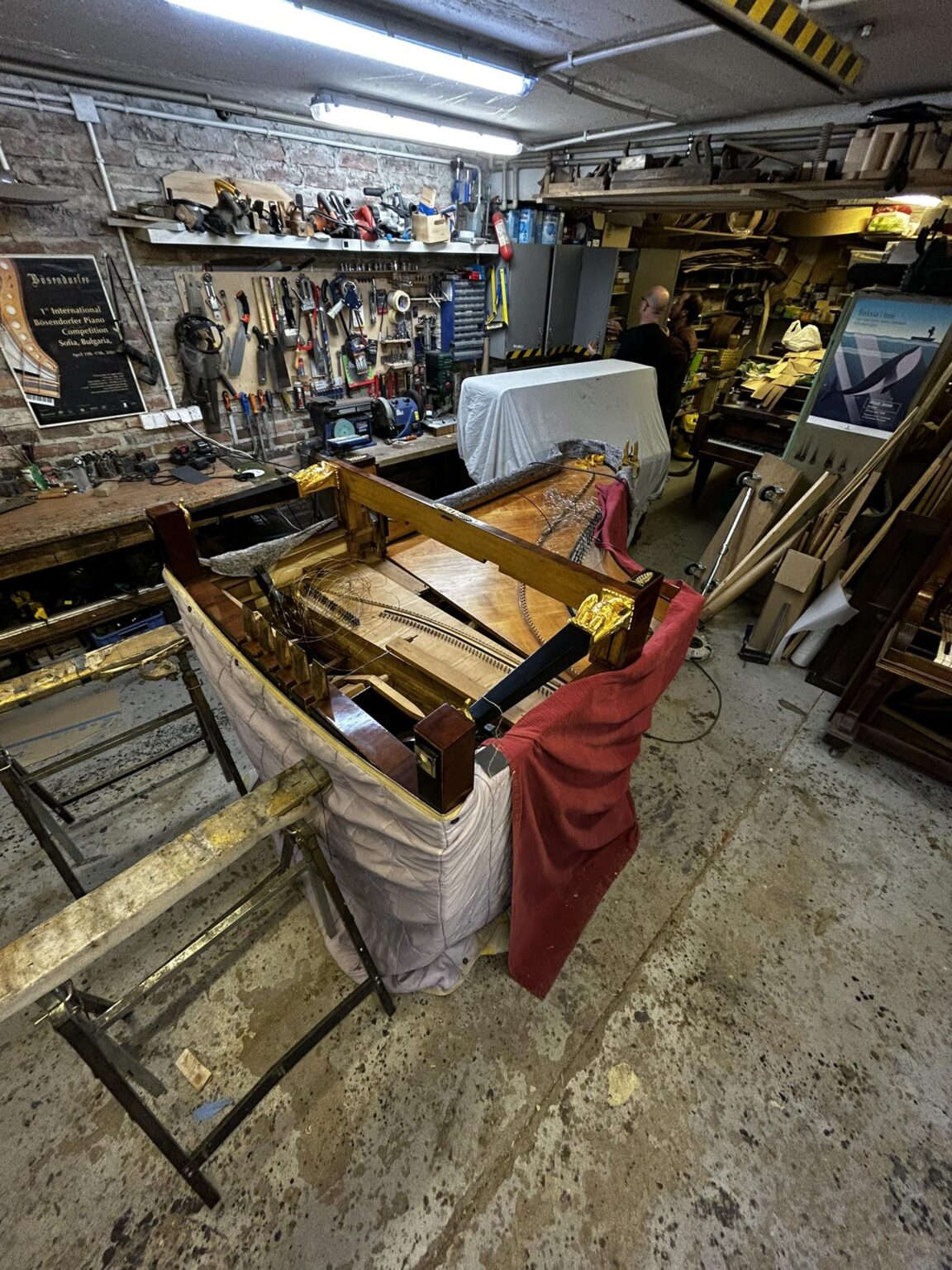 Konserwacja zabytkowego pionowego fortepianu „Żyrafa”.