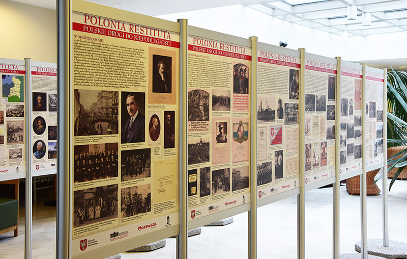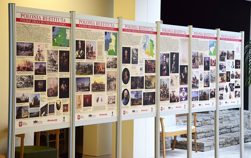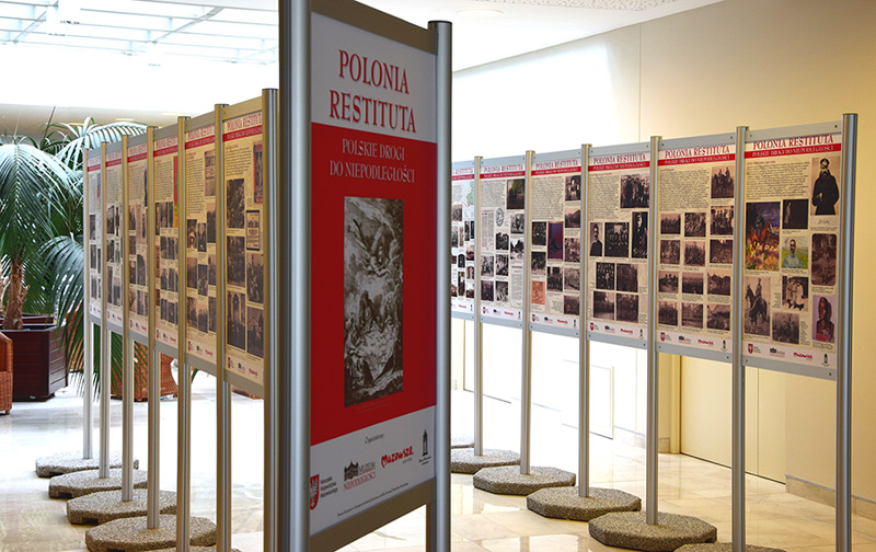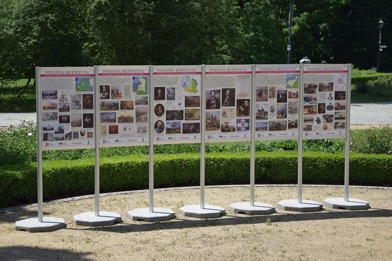 Wystawa planszowa zatytułowana „POLONIA RESTITUTA. POLSKIE DROGI DO NIEPODLEGŁOŚCI” przygotowana została z okazji 99. Rocznicy odzyskania przez Polskę niepodległości. Uroczyście została otwarta 11 listopada 2017 r. Na ekspozycję plenerową złożyło się 25 plansz o wymiarach 70 cm na 100 cm, przedstawiających najważniejsze wydarzenia w dziejach narodu polskiego począwszy od konfederacji barskiej, a skończywszy na plebiscytach decydujących o przynależności państwowej Warmii, Mazur, Powiśla i Śląska. Plansze zawierają podstawowy materiał ikonograficzny związany z walką z zaborcami i kształtowaniem się państwowości polskiej. Prezentowana wystawa ma cenne walory edukacyjne i wychowawcze. Dorosłemu obserwatorowi przybliża historię Polski od końca XVIII w. do l. 20. XX w. oraz kształtuje postawy patriotyczne wśród dzieci i młodzieży.