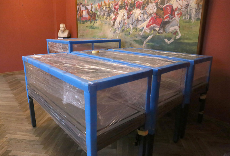 Na ekspozycji we Dworze Krasińskich znajdowały się gabloty nie spełniające wymogów konserwatorskich, a tym samym nie zapewniające w dostatecznym stopniu bezpieczeństwa eksponowanych muzealiów. W gablotach tych nie można było prezentować eksponatów wymagających podwyższonych warunków bezpieczeństwa. Ponadto nie były to gabloty w pełni przeszklone i doświetlone.