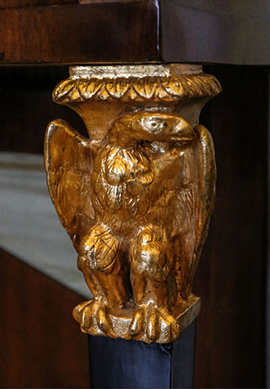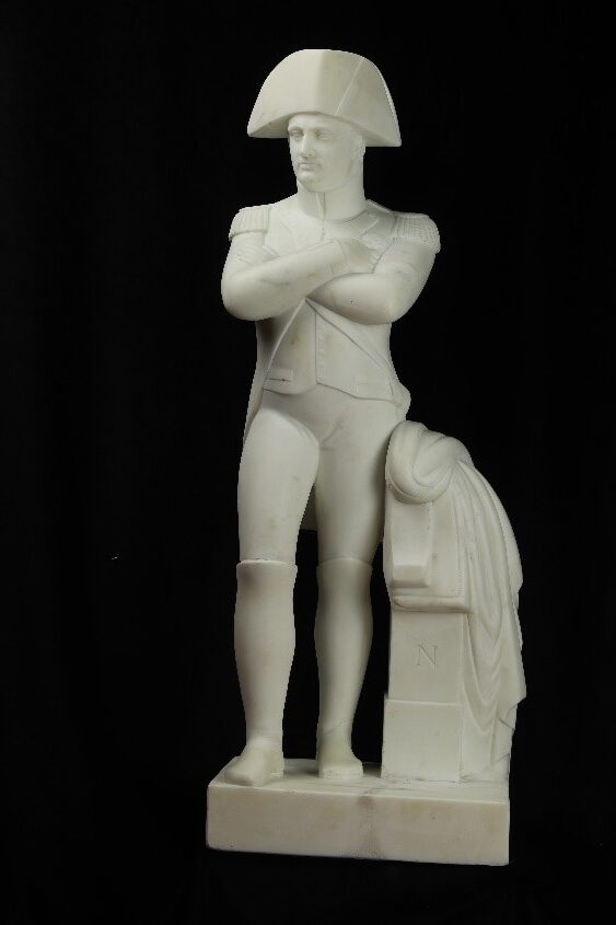 Ogólny stan zachowania obiektów był niezadowalający. Obiekty były zabrudzone w stopniu dość znacznym. Zabrudzenia w dużej mierze skumulowane były w zagłębieniach form rzeźbiarskich. Bardziej zanieczyszczone były powierzchnie matowe i fakturowane. Zabrudzenia były integralnie zespolone z podłożem. Występowały niewielkie przebarwienia żelaziste. Były widoczne uszkodzenia o podłożu mechanicznym szczególnie w przypadku Posągu Napoleona. Struktura marmuru w tych miejscach była osłabiona. Miejsca spękań były spoinowane. Zdecydowana większość ubytków występujących na obiektach była uzupełniona. Wszystkie uzupełnienia uległy pożółknięciu i różniły się wydatnie kolorem i estetyką od oryginałów.