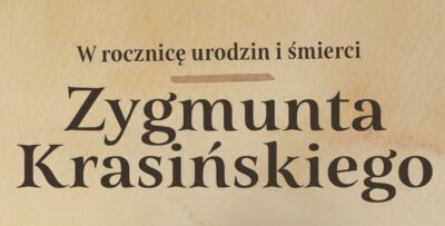 Szanowni Państwo, W miesiącu lutym przypadają dwie niezwykle ważne rocznice – urodzin (19 lutego) i śmierci (23 lutego) wybitnego poety, dramatopisarza i romantycznego wieszcza – Zygmunta Krasińskiego.